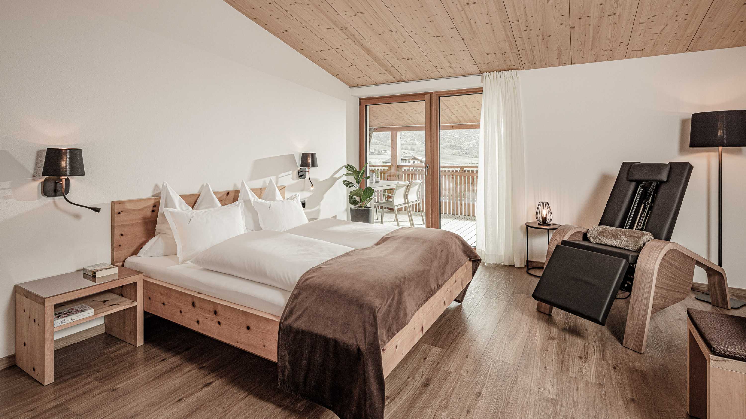 Zwei Balkone, zwei Perspektiven auf den Tag. Einer für romantische Dinner in der lauen Abendluft. Einer zum Sonne tanken und Nichtstun. Die Deluxe Suite Plima liegt im zweiten Stock unseres Guesthouse und ist der Lieblingsort aller Sonnenkinder und Frischluftmenschen. Ein Platz über den Dingen. Für warme Stunden. Und Momente unter freiem Himmel.