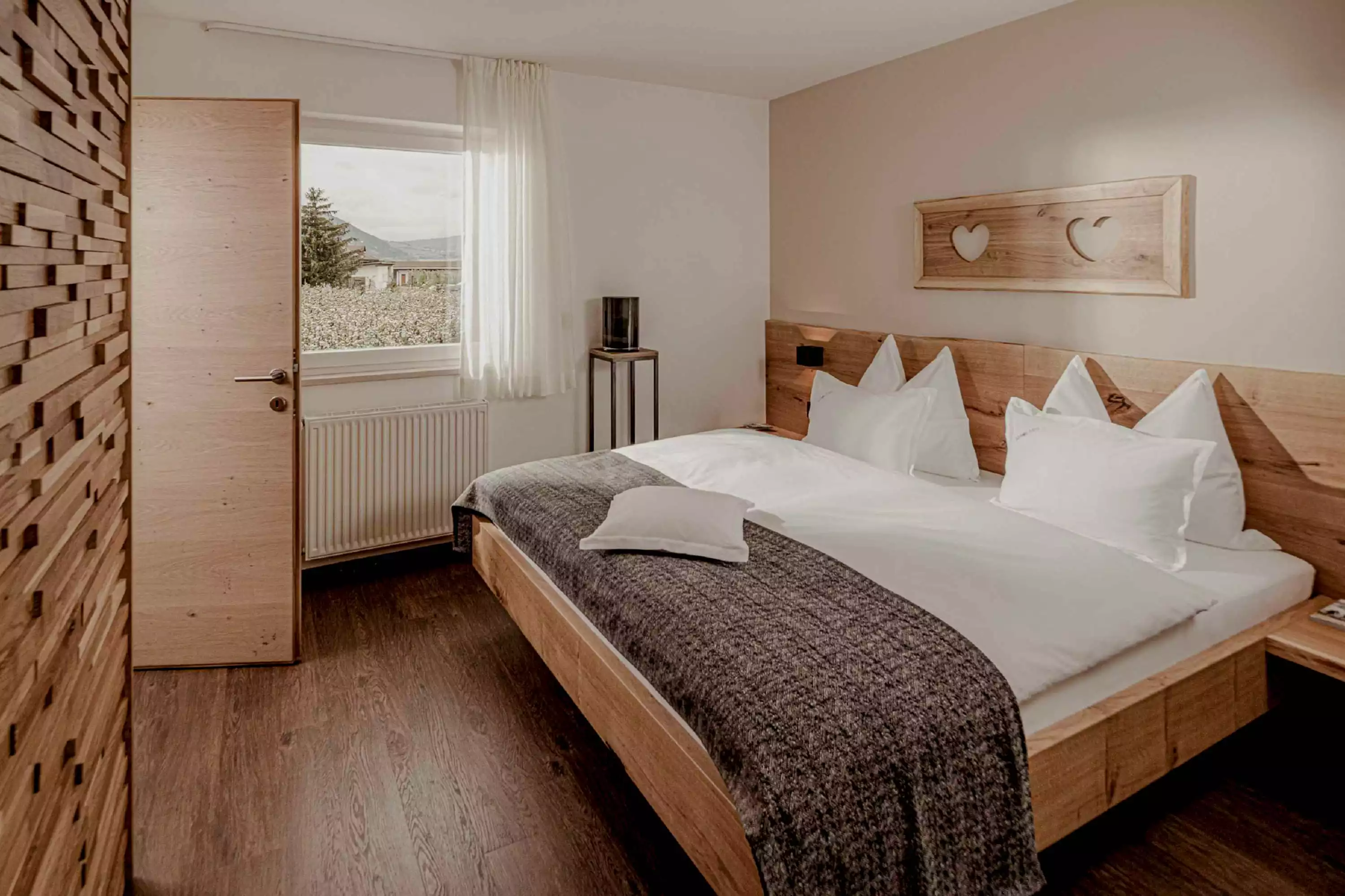 Natur. Freiheit. Weite. Die Superior Suite Pala öffnet den Raum nach draußen. Ein lichtdurchfluteter Wintergarten schenkt neue Perspektiven und den Blick über die Apfelgärten. Benannt nach dem Flügel der Mühle, steht diese Suite für Bewegung, Leichtigkeit und frische Gedanken. Ein Ort zum Innehalten. Zum Weitblicken. Und zum Durchatmen.