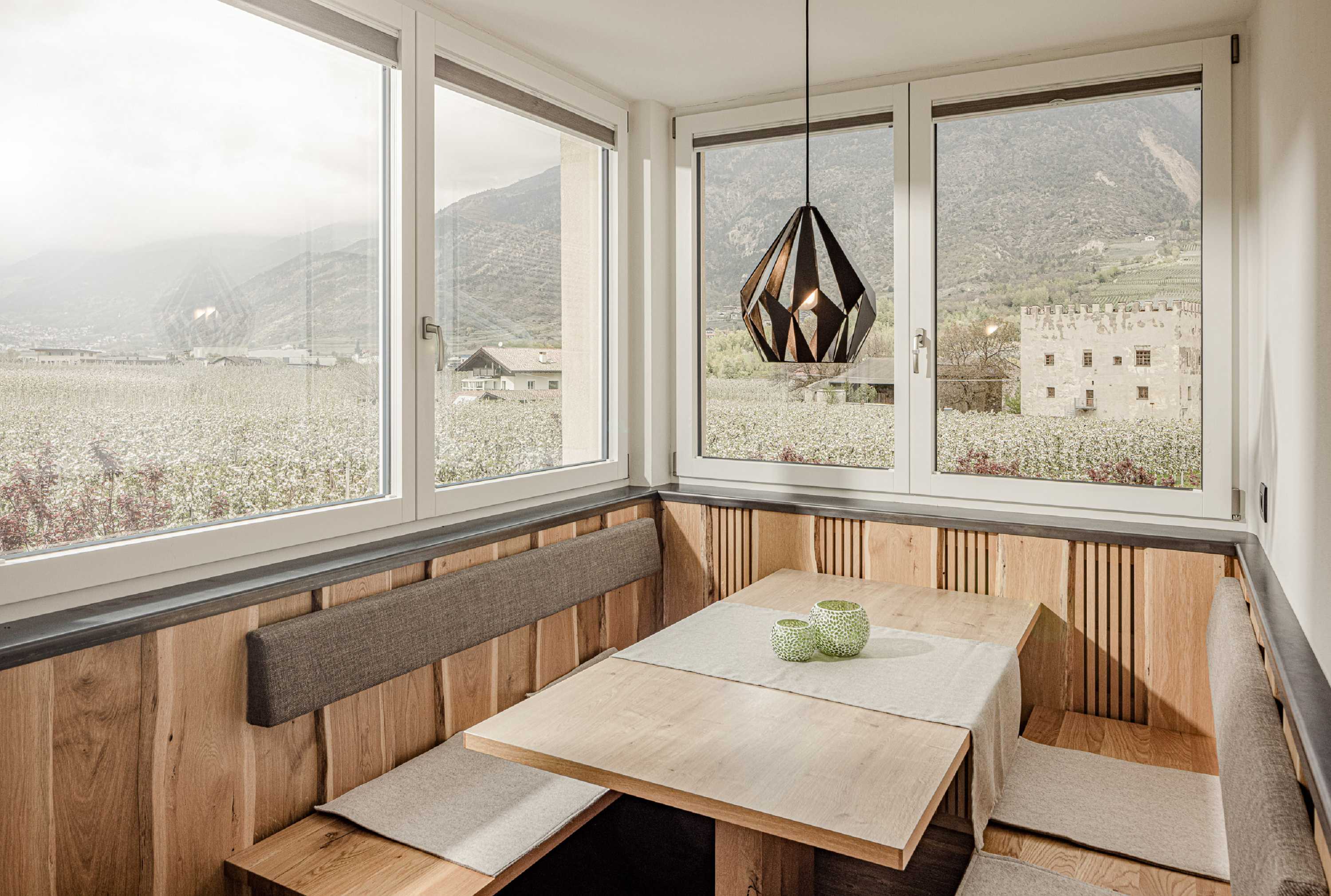 mit Blick ins Grün, zur Morgensonne oder in die Weite des Vinschgaus.